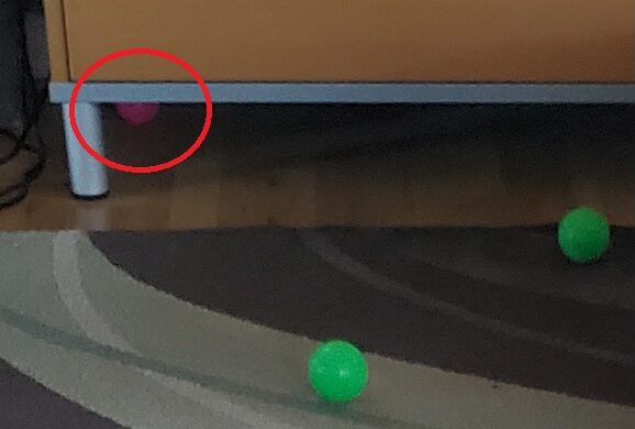There are other balls on the floor, but they are under furniture and not accessible to Sparky.