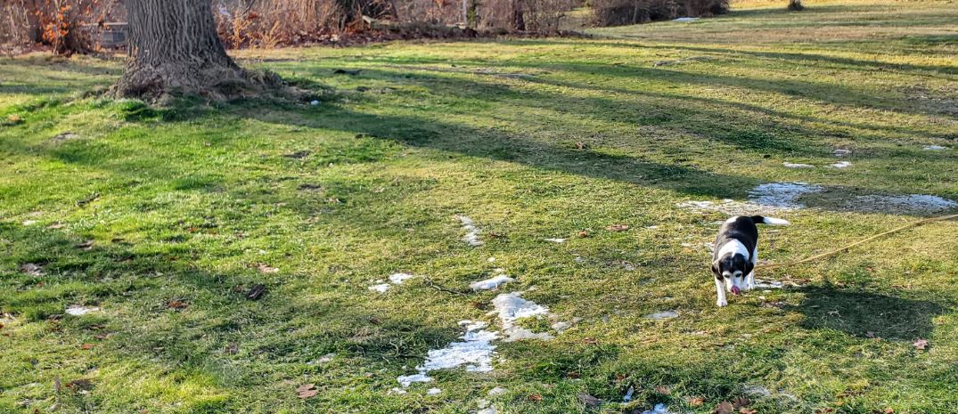 Sparky is very conscientious, but when we are blanketed with snow, he practices festival pooping. When the snow melts, it’s a mine field. The snow is gone, but it’s 22o and sunny. Cleaning up his debris is as easy as picking up golf balls at a driving range.