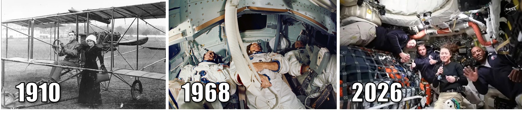 In 1968, 58 years later, Apollo 8 orbited the Moon for the first time. They didn’t have shit to work with. Everyone is aware of the crude level of computing, but material science has also advanced significantly. They didn’t have time to horse around, so there are few photos from inside the capsule during the mission.