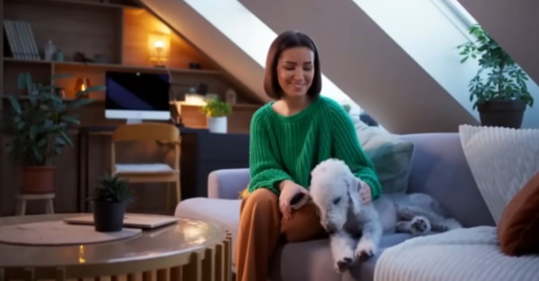 They say the dog doesn’t have to be in your bed, which is good, because dogs have glands and lick their paws. Having a dog in your bed is nasty. No idea why this lady is scissoring her dog. That doesn’t seem healthy.
