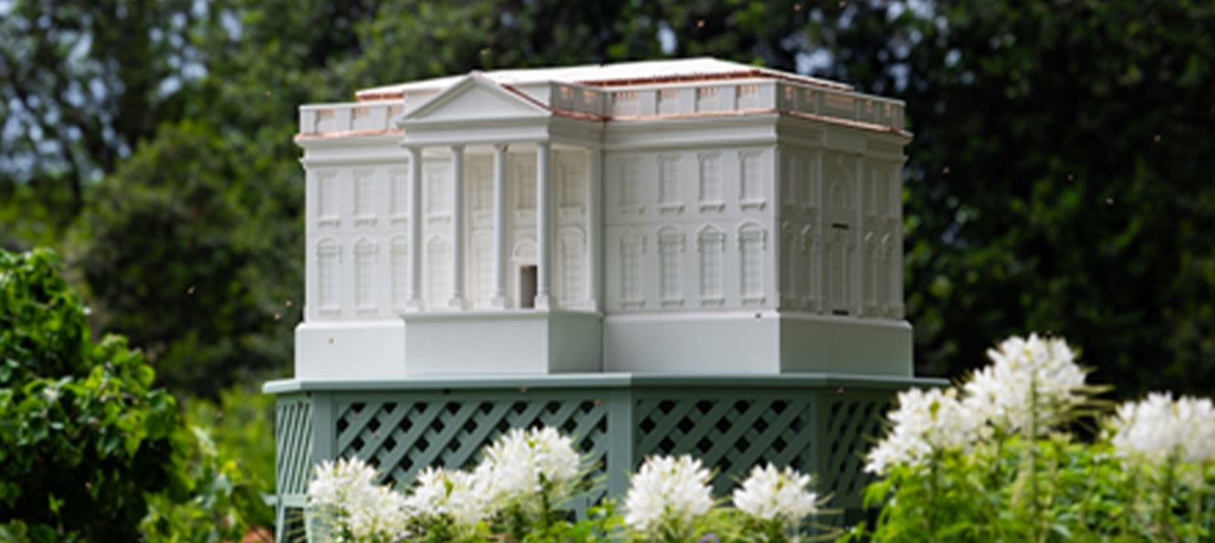 The queen-worthy new hive, hand-crafted by a local Virginia artisan in the image of the White House, will add two new bee colonies to the property’s existing two.
