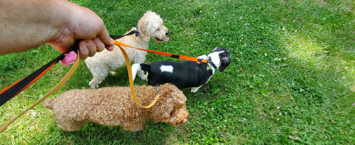 They all did fine. A short leash is necessary to keep them from getting all tangled up. As the walker, I had to be more decisive than I usually am with Sparky.