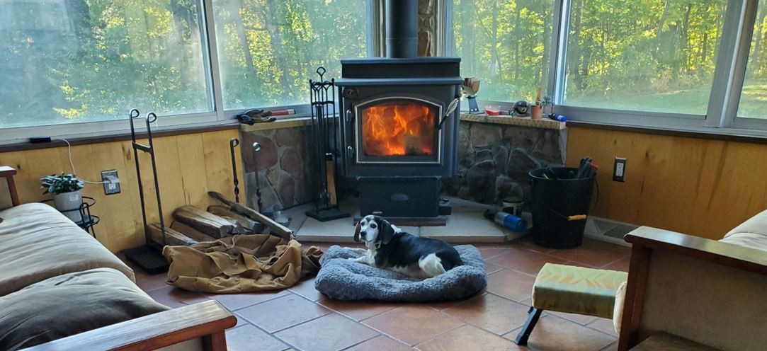 I brought in the firewood, went down to the garage for kindling, started the fire and moved his bed so Sparky could enjoy the ambiance. Why is he disgruntled?