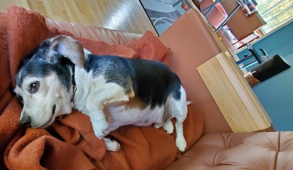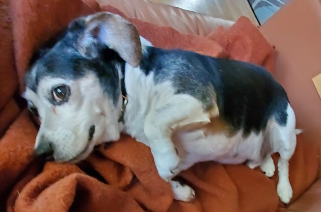 Sparky gets nothing out of a cold and rainy day.  Until the fire in the wood stove gets going, he intends to lay right here.  If I want to rub his belly, that would be okay with him.