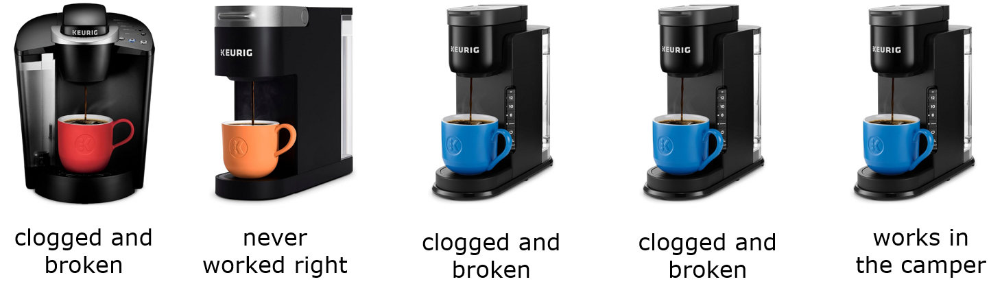 I’m not ready to buy a disposable junk machine.  Keurig owns the single-serving coffee machine market with 75% market share.  They may be too big to care.  I bought a Ninja, hoping that they compete with quality.