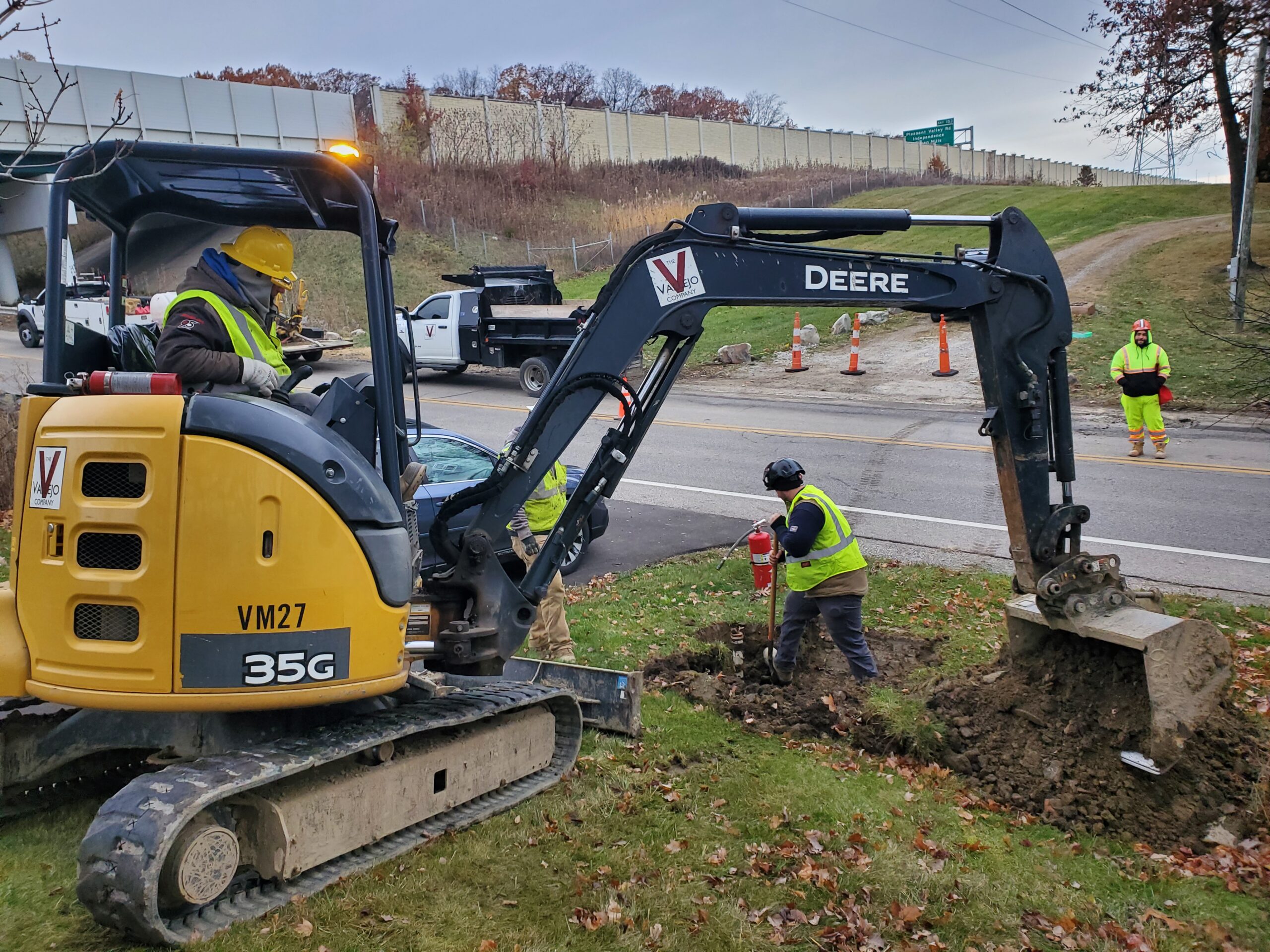 Before boring my natural gas line, they had to excavate to locate an 18 inch high pressure natural gas transmission line. I like that this guy has to stay near that red fire extinguisher in case something exciting happens.