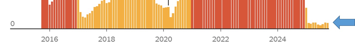 For comparison, the blue arrow indicates where we are now. President Trump has accomplished these results with no new legislation, and with the DNC attempting to impede border enforcement by any means necessary.