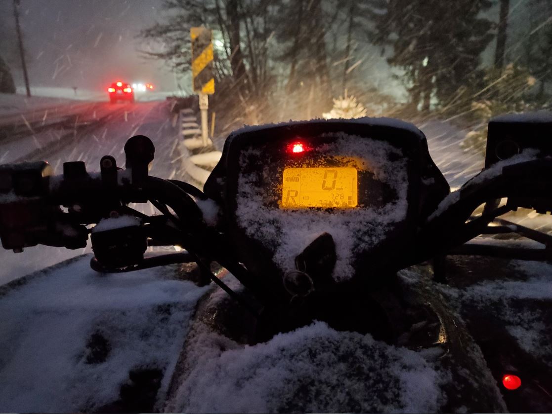 With a brisk wind, snow accumulating, and cars going 10 mph, I’m out battling the elements. Feels pretty manly.