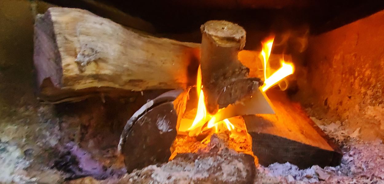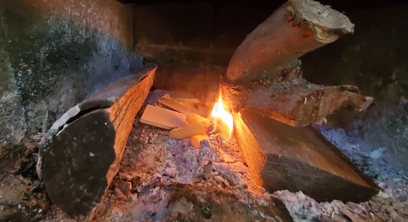 A minute later, and the fire is going.