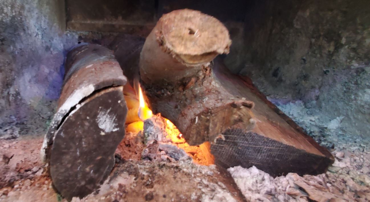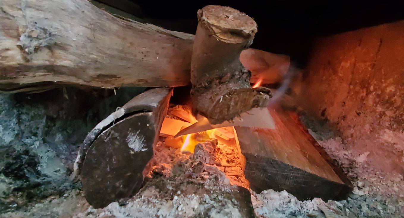 A minute later, I added a piece of scrap wood and a small log on top.