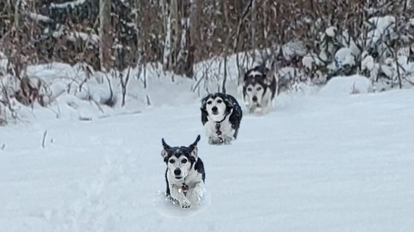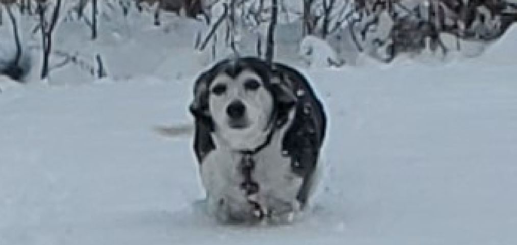 When we went outside, Sparky went all winter wolf. Now he wants me to make him a winter camo jacket like a Finnish sniper.