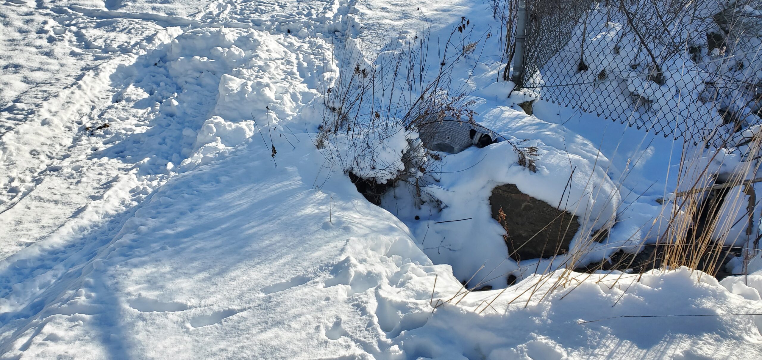 Sparky says this is a high-traffic pinch point because it’s the easiest way to get passed the highway fence. If I can get him a Mosin–Nagant, he says the coyote problem will be resolved.