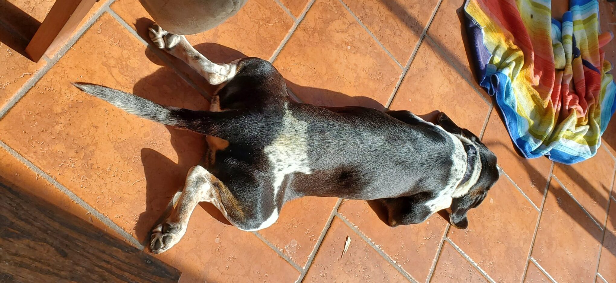 Sparky is locked up, so he’s taking a nap in his crate. Life would be great if they could reliably get along.