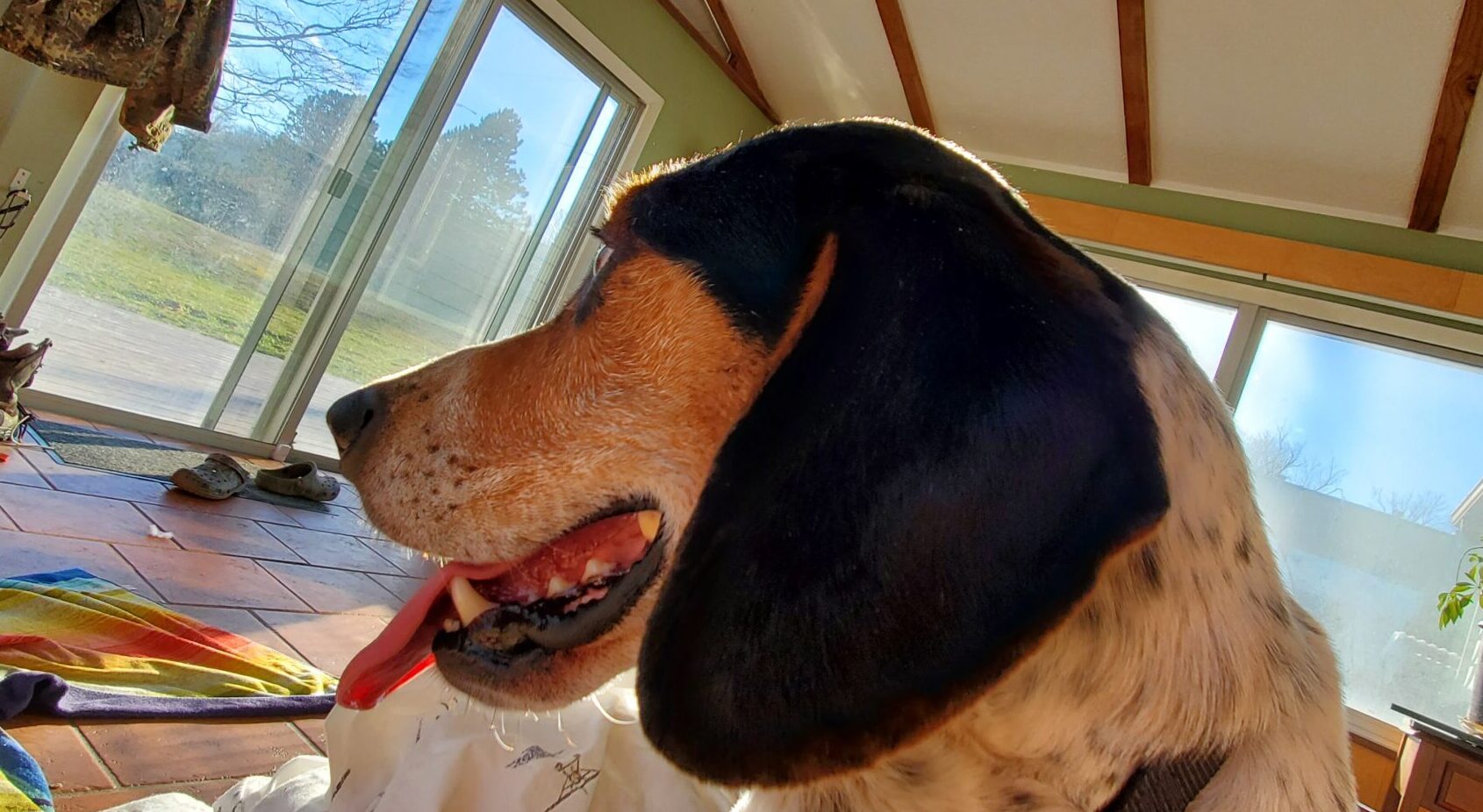I didn’t want it to be awkward, so I told Rusty that I had to get up to close the shades.  When I went back to the couch, I called Sparky over.