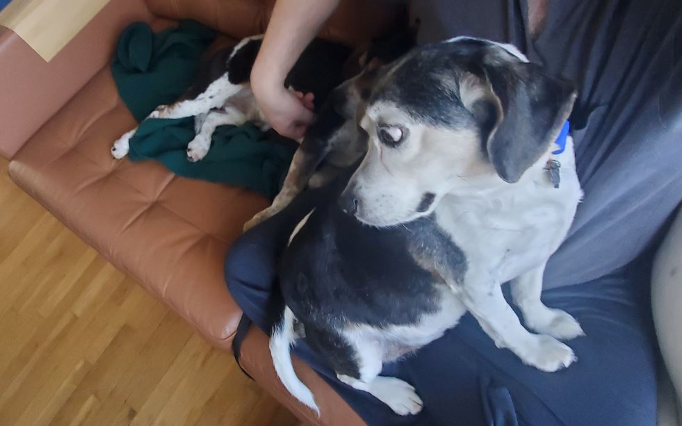 Rusty is a really nice hound.  Growing up, it seems like he spent a lot of time alone. He follows me around the house, and doesn’t mind if we are just going downstairs to put in a load of laundry.  At night, Sparky helps out by staying in the solarium with him.  Otherwise, Rusty would be complaining.