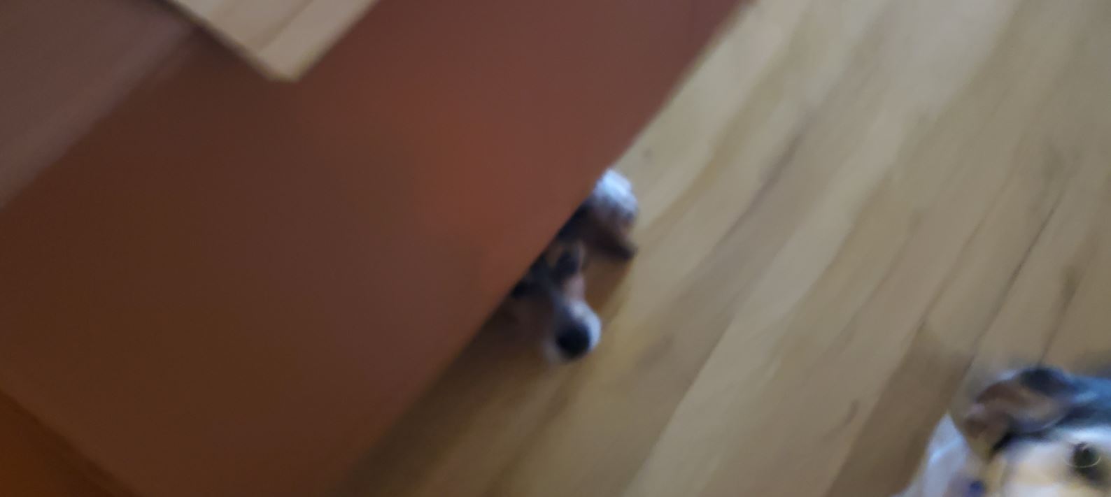 I have learned to check on Rusty when there is a weird noise. He was only six feet away, on the other side of the couch, when there were clattering sounds. I got up to look, and there was no Rusty. I did get my phone, but didn’t have time to turn on more lights or activate the flash.
