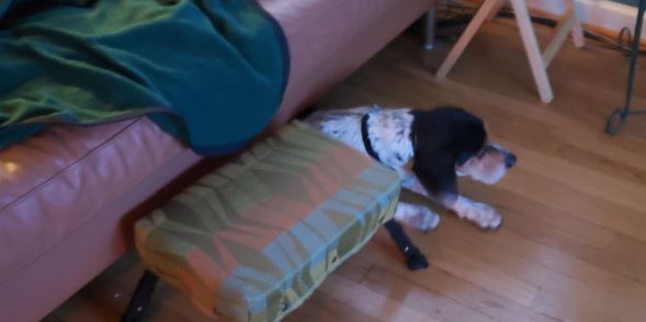 Sparky likes a good train wreck and he was as incredulous as I was. Rusty managed to get under the couch.