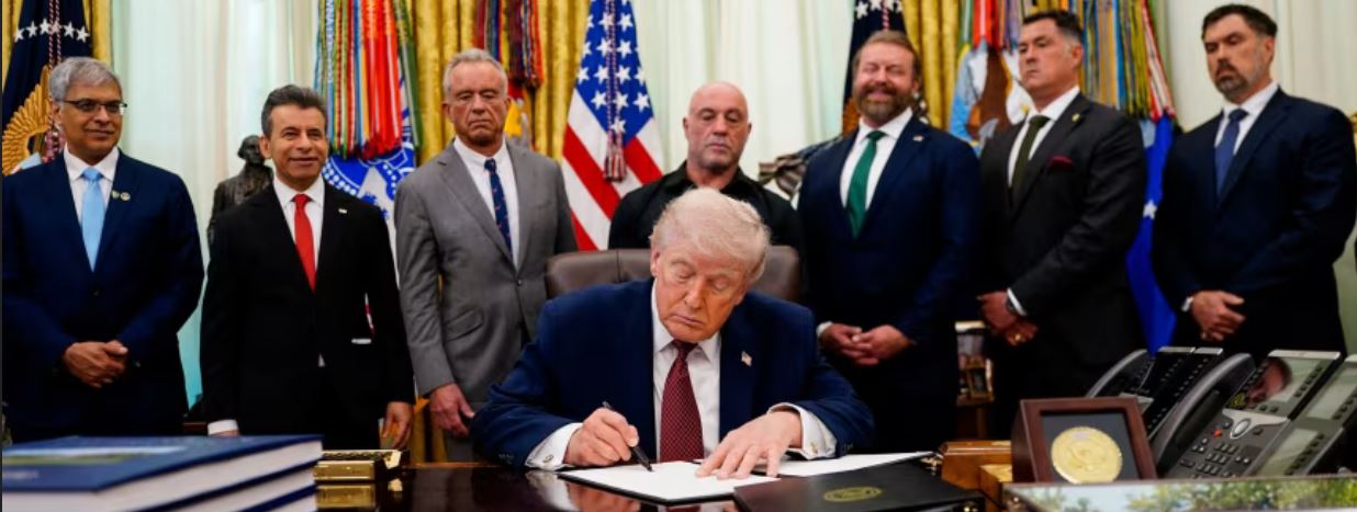 President Donald Trump on Saturday signed an executive order aimed at encouraging expanded research into psychedelic drugs, part of a broader push to explore emerging mental health treatments.